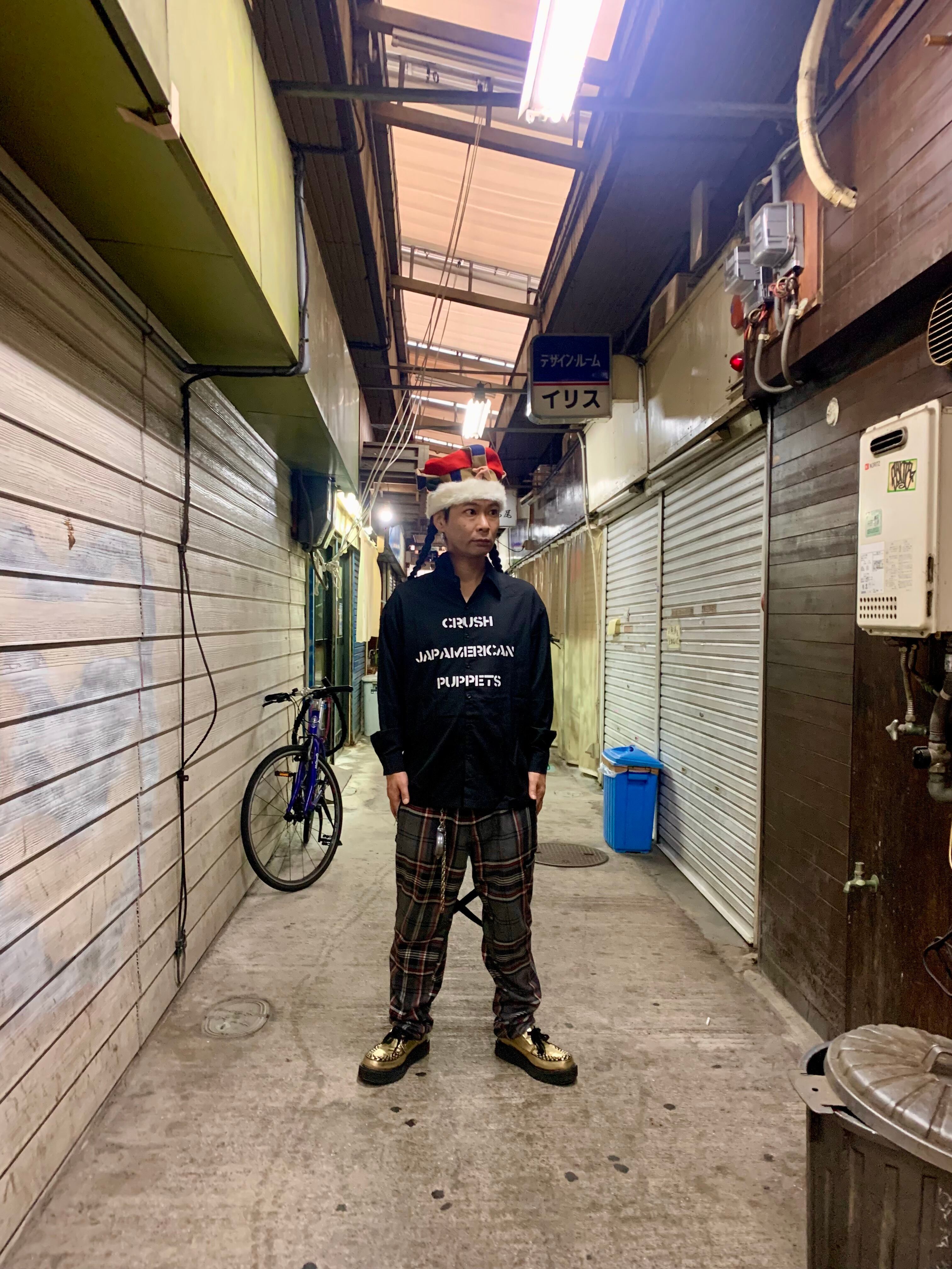 フロントには彼が掲げる「傀儡粉砕」の標語を英訳したものをプリントし、バックには2025年8月31日に開催されたUTEROZZZAAA 20周年記念式典「世界妄想博覧会」でのライブ風景をプリントしました。